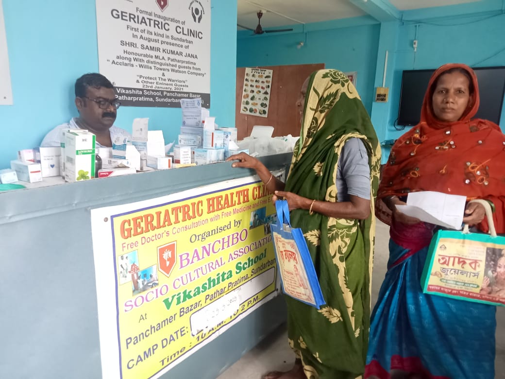 Approximately 100 seniors each month from numerous remote islands in Patharpratima undergo treatment. With this assistance, a significant number of elderly individuals can maintain their health and enhance their physical and mental well-being.